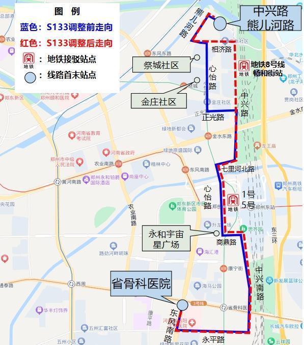 途经道路调整为:东风南路、永平路、中兴路、商鼎路(下行:东站南街)、心怡路、七里河北路、中兴路、相济路、熊儿河路。