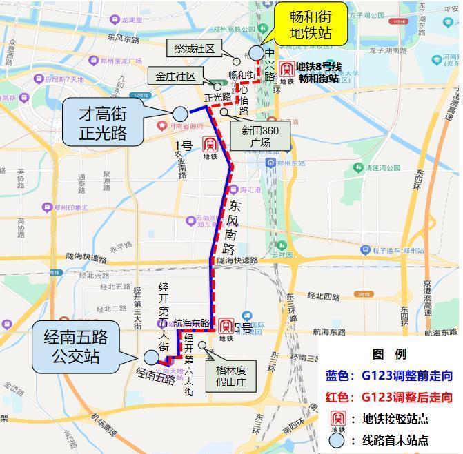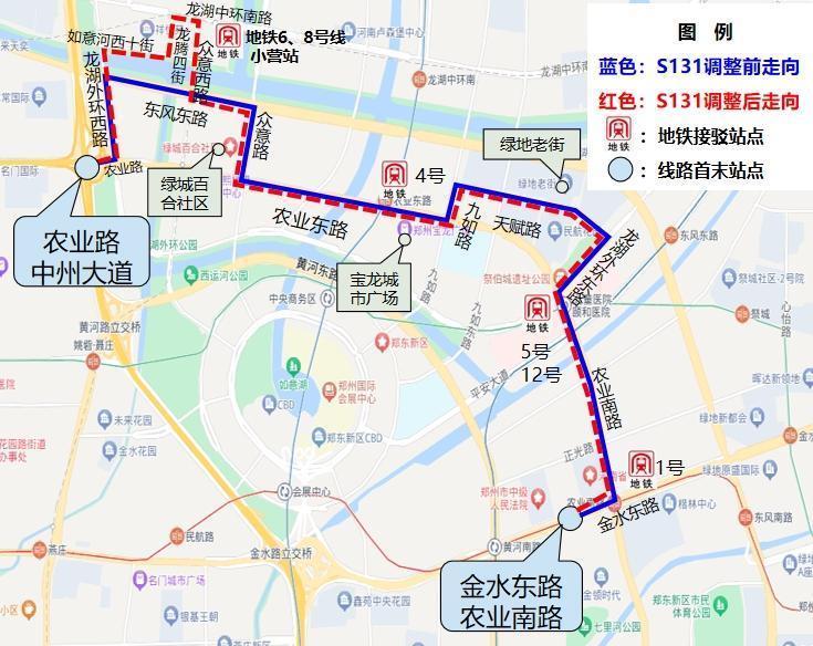 途经道路调整为:农业路、龙湖外环西路、如意河西十街、龙腾四街、龙湖中环南路、众意西路、东风东路、众意路、农业东路、九如路、天赋路、龙湖外环东路(下行:天时路)、农业南路、金水东路。